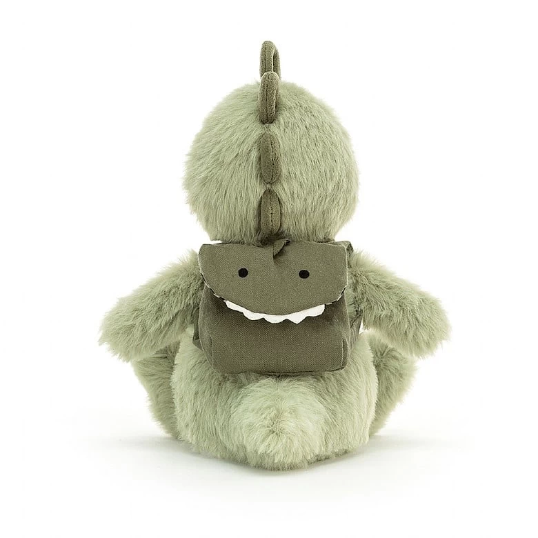Ready and roaring for a weekend’s camping, Backpack Dino is keen to get stomping! This scamp has tussly sage-green fur, soft baby teeth and squidgy mossy spines, not to mention a neat little suedey rucksack! Swish that tail and sing a campfire song!