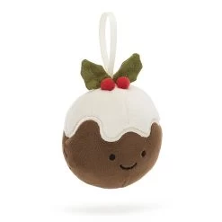 Squidgy, bright and very merry, the Festive Folly Christmas Pudding loves to hang out on the tree with pals! This cuddly fruitcake wears an icing cap with wavy embroidered edging, topped with stitch suedette holly leaves and neat red berries.
