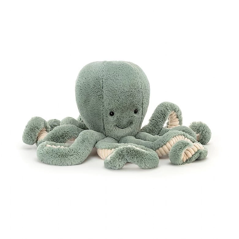 Dive to the depths for high adventure with wonderful Odyssey Octopus! Squishably soft in sea-moss green, with eight super-squiggly springy arms, Odyssey loves to give cordy cuddles. A splendid friend for any merfolk!